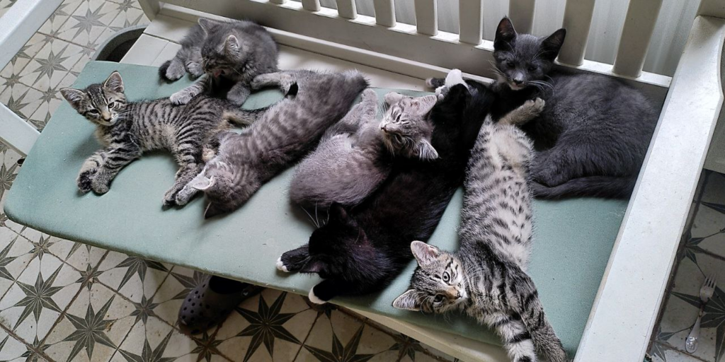 Auch bei den Katzen stellte sich Nachwuchs ein. Unsere beiden jungen Katzenmädchen, Friedel und Pauli warfen je vier wunderschöne Junge. Die Freude war groß und die beiden Katzenmütter kümmerten sich verantwortungsvoll um den Nachwuchs. Leider hatte Friedel nach wenigen Wochen einen tödlichen Unfall und wir blieben mit vier Katzenwaisen zurück. Nun waren unsere Tage und Nächte angefüllt mit Katzen füttern und kleine fellige Bäuche massieren. Alle acht Katzenkinder haben überlebt und im Sommer haben fünf davon ein neues Zuhause gefunden. Zwei Kater (Rumi und Prinz Puck) und ein Kätzchen (Rosa) sind bei uns geblieben.