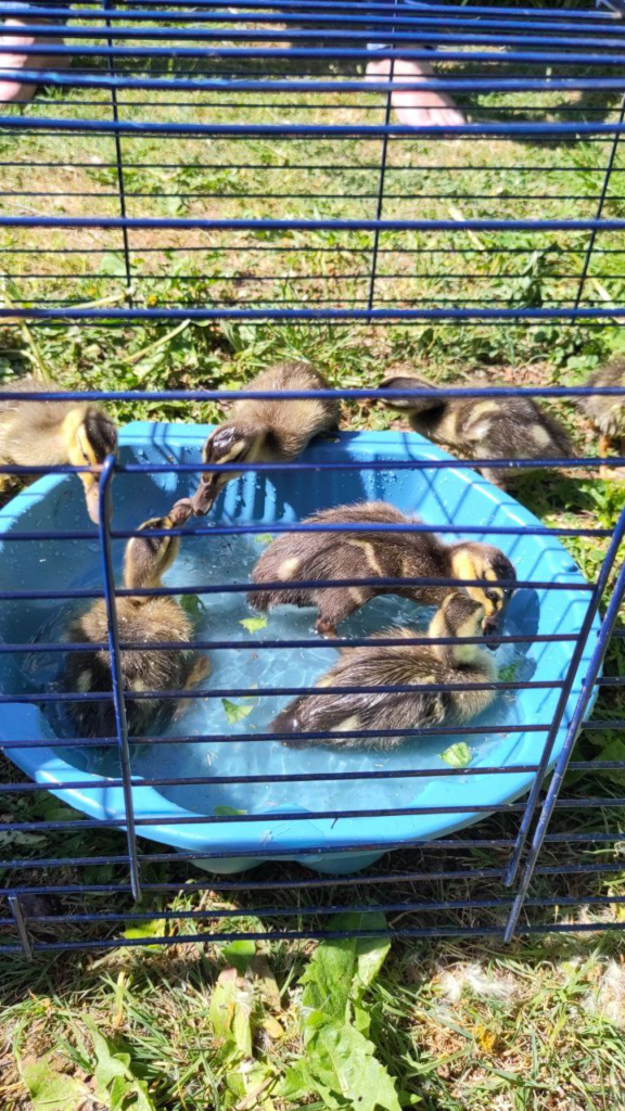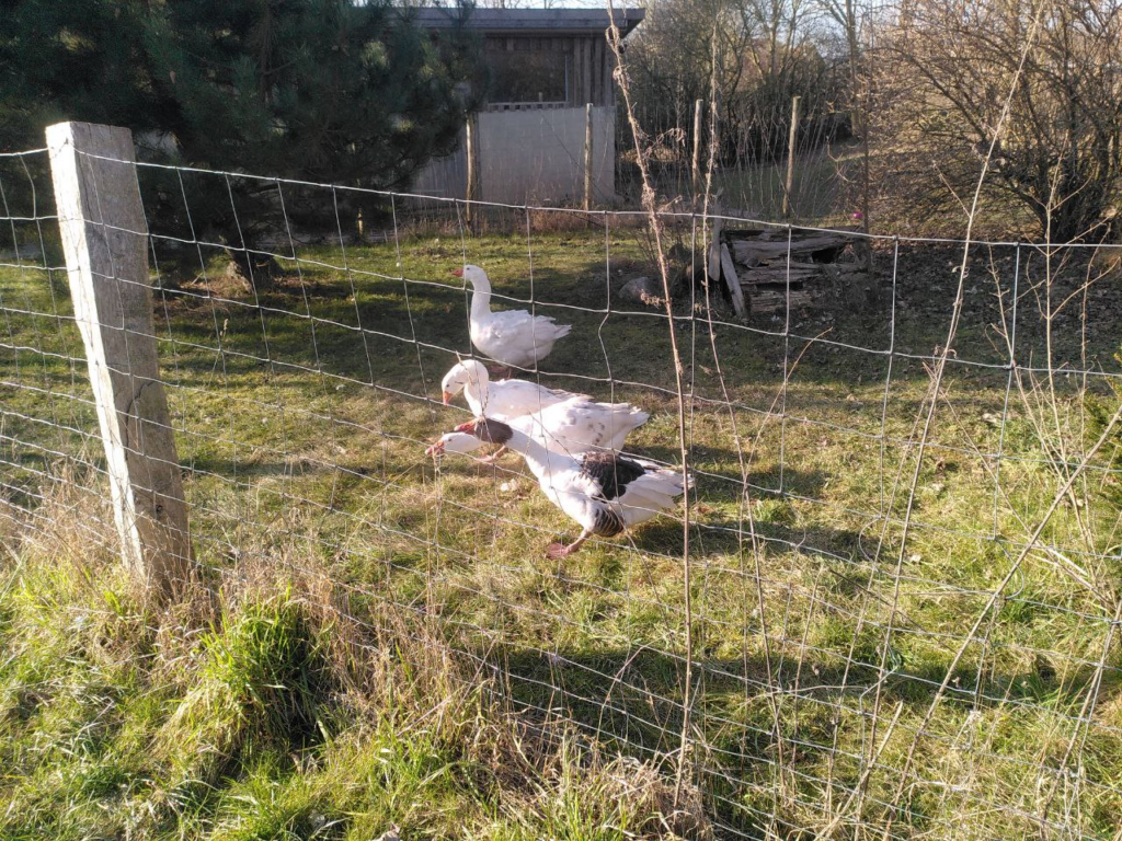 Es gab auch viele Geburten. Im Brutautomaten wurden Laufenteneier ausgebrütet und tatsächlich schlüpften aus neun von zehn Eiern am Ende kleine Entenküken. Leider überlebten aber nur zwei Entendamen und unser Erpel Ferdinand die Kinderstube. Voller Eifer übernahmen sie die verantwortungsvolle Aufgabe, den Nacktschnecken zu Leibe zu rücken. Leider holte der Fuchs schon nach wenigen Monaten die beiden Mädchen. Zurück blieb der schwer verwundete Ferdinand, der sich aber, dank Tierarzt und guter Pflege bald erholte. Wir kauften für ihn zwei neue bildschöne Laufentendamen. Seither ist das Geschnatter der Drei überall im Garten zu hören und im Herbst wurden wir auch schon mit täglich einem Entenei belohnt.